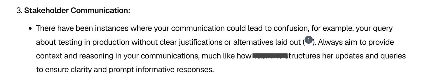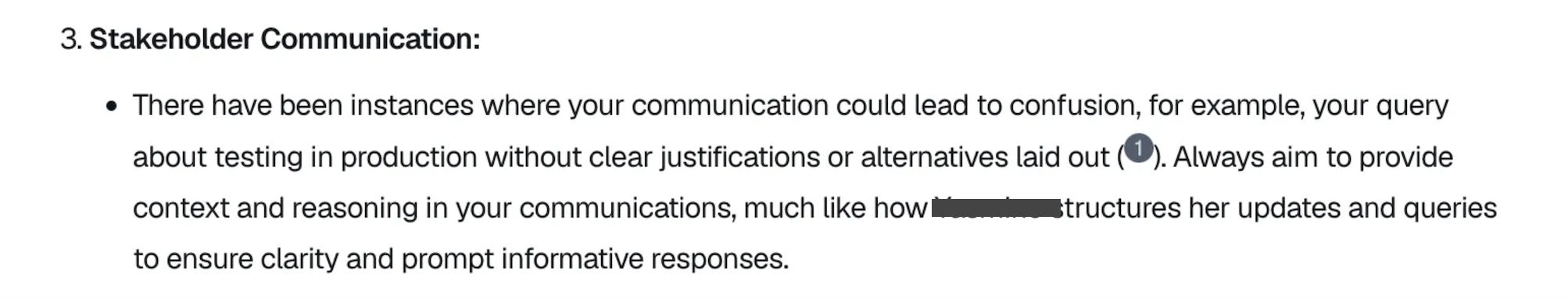 "Based on all the messages from the Slack channel what underlying processes can you infer at [my company] ? An underlying process is for example an unspoken rule that some people or teams need to validate some specific decisions, but you can see it in the interactions"